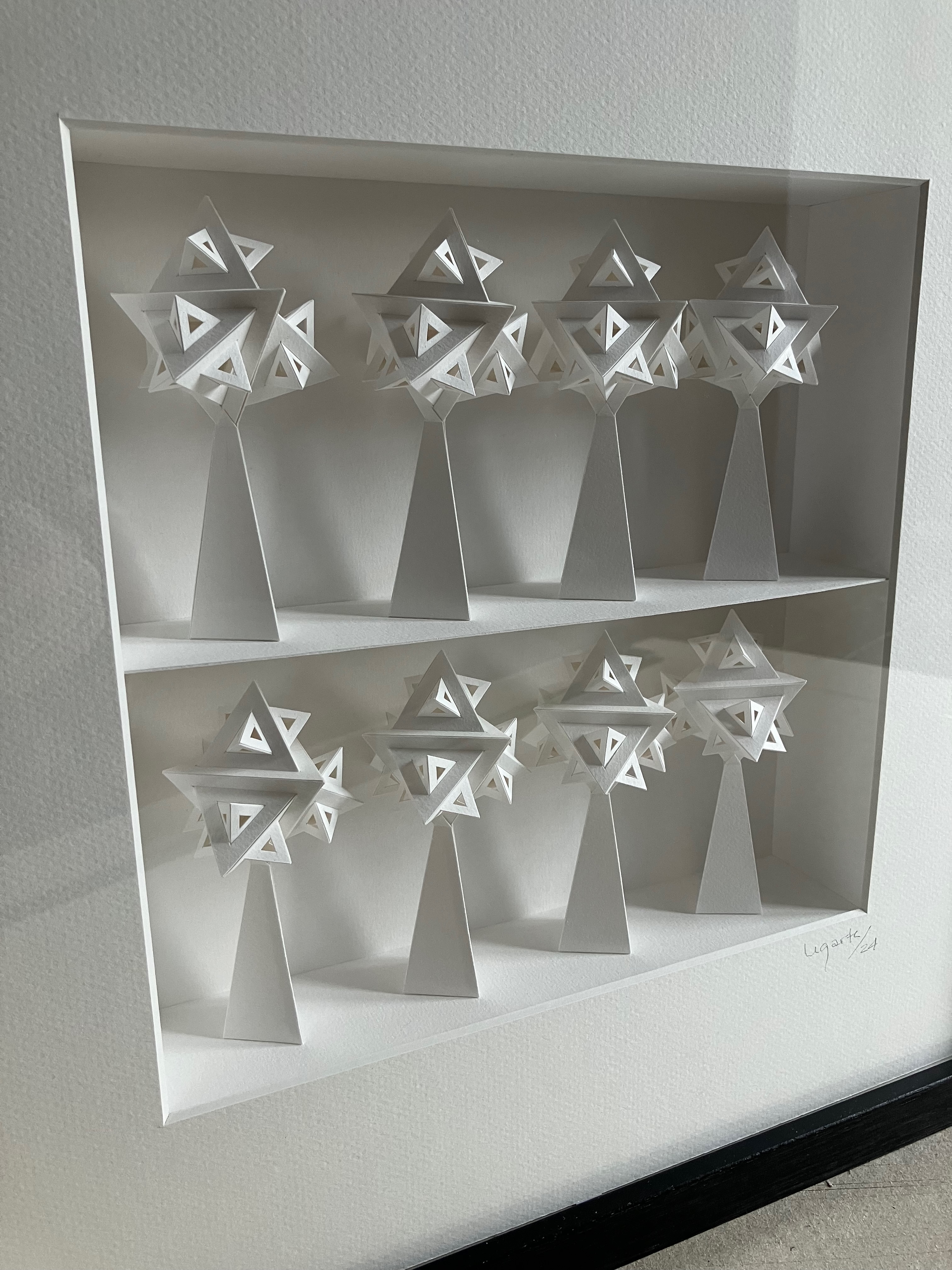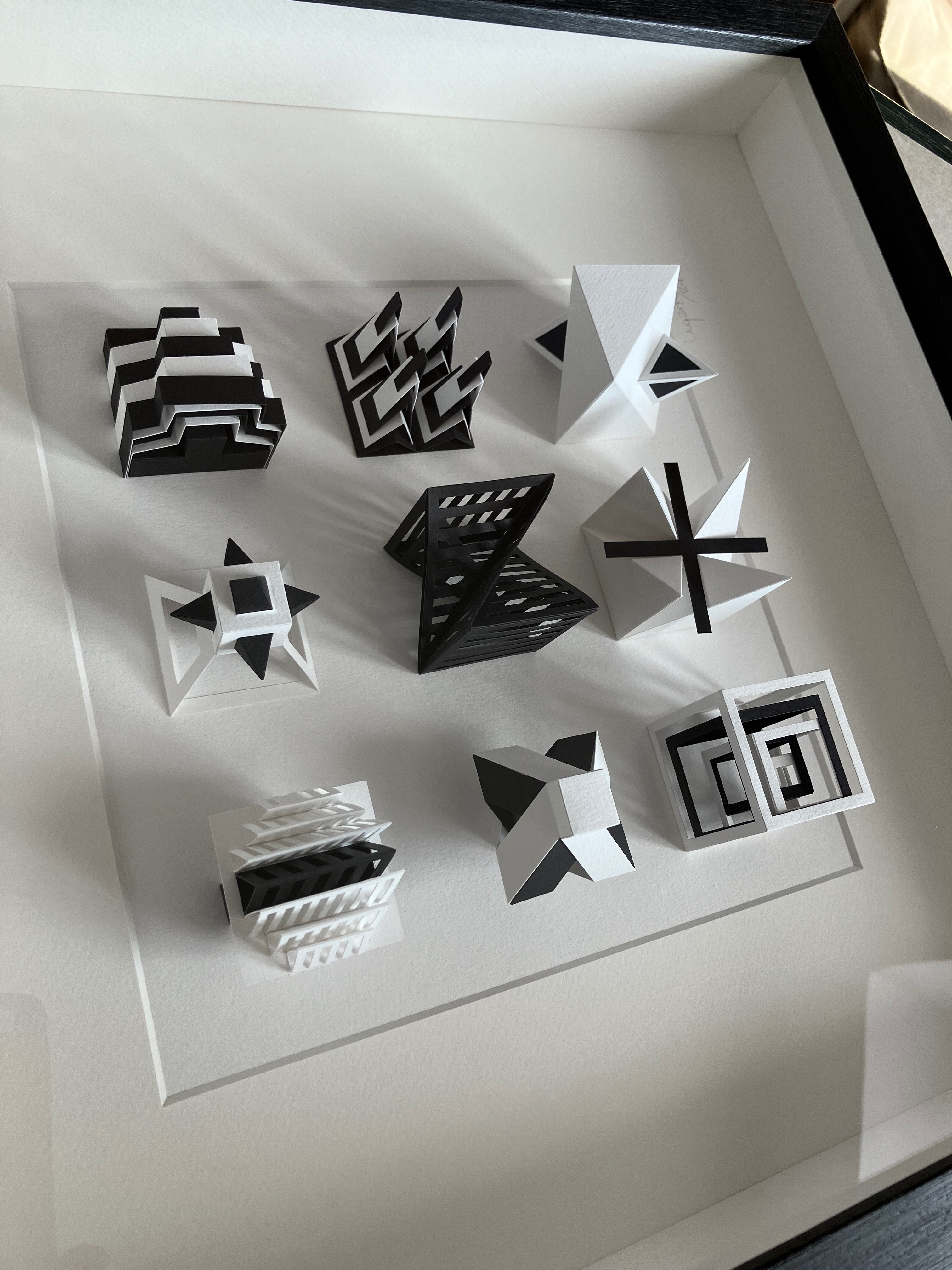I’m in the habit of provoking, questioning, prompting reflection, moving and inspiring observation through my research about geometric abstraction. I create abstract, sculptural, kinetic art works. Each one a unique universe different from the next, arrived at through research that goes beyond the reality that surrounds us, thoughtful, disintegratory observation. I go on to construct something new starting from this foundation. The infinite towards the smallness and greatness, opposites perpendiculars and equals, suspended shapes, inclusions, successives rotations, chained systems, the dialog between light and shape, optical illusions, fractals, unstructuring shapes are themes that interest me to work on.